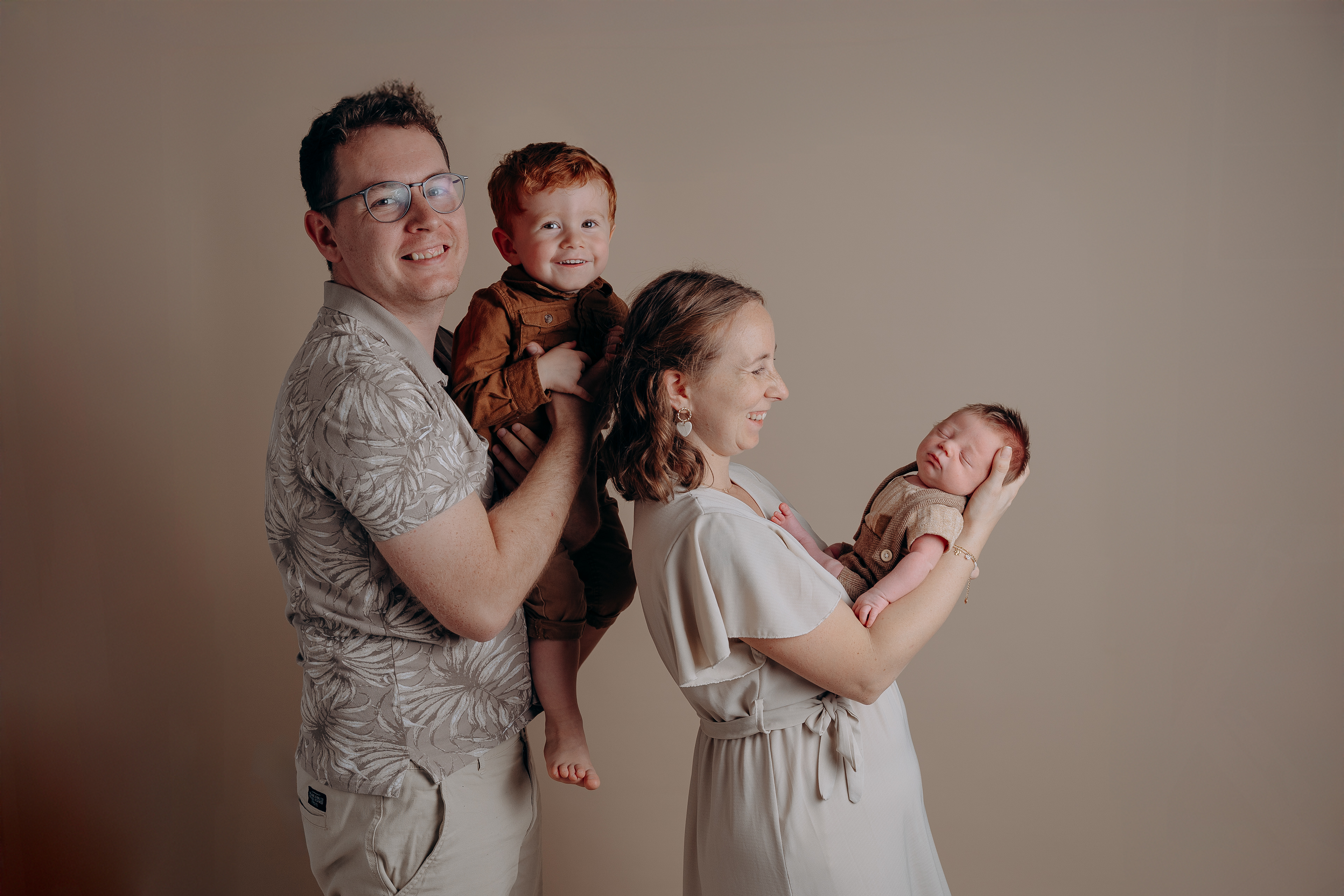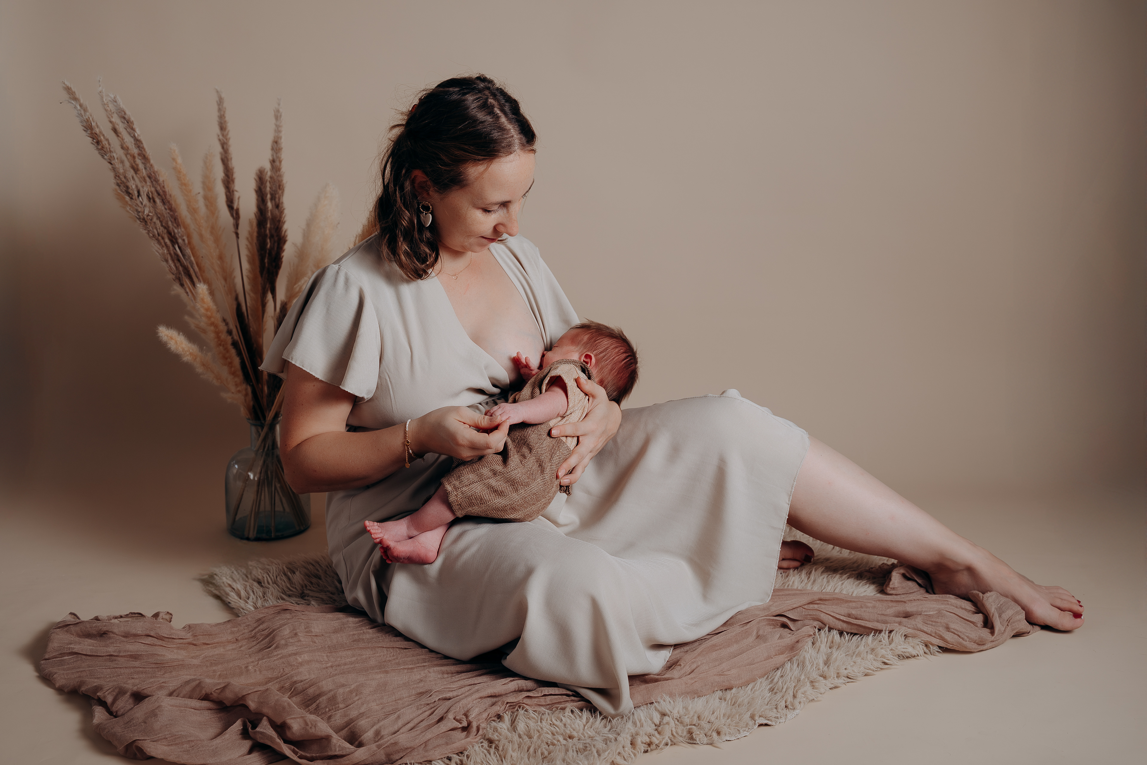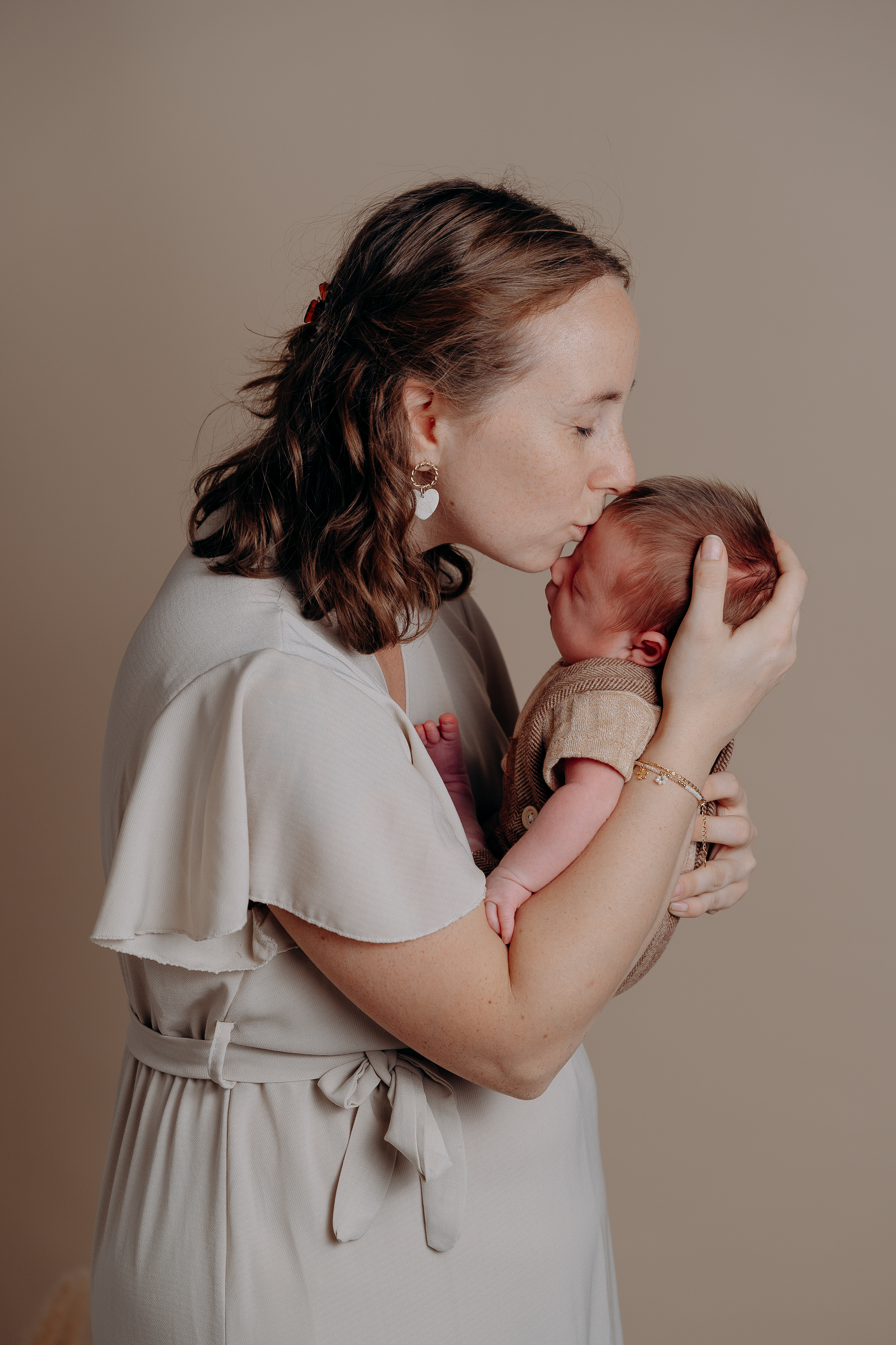 Fond neutre, lumière douce, accessoires minimalistes… tout est pensé pour mettre l’émotion au cœur de l’image, dans une ambiance simple et chaleureuse.