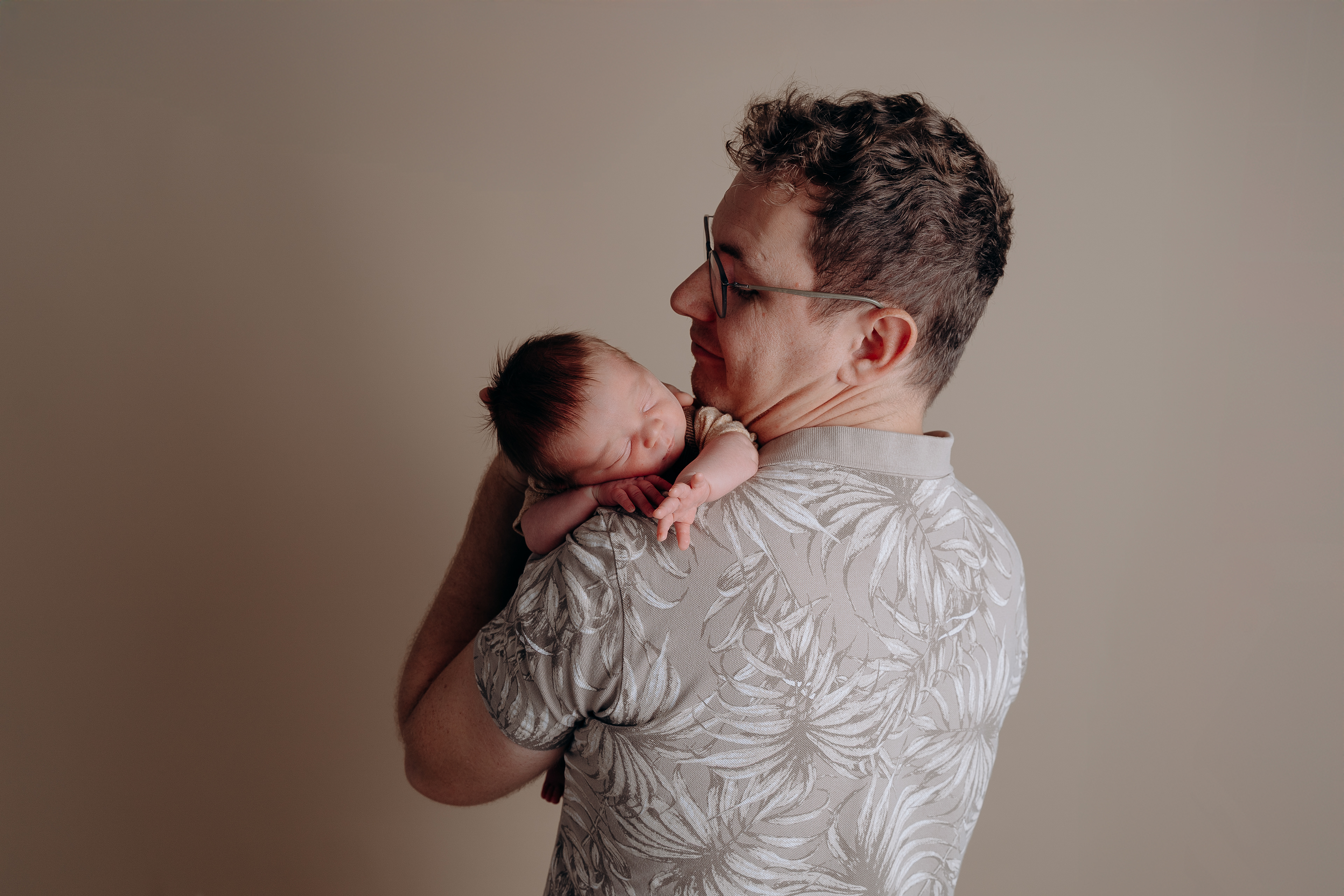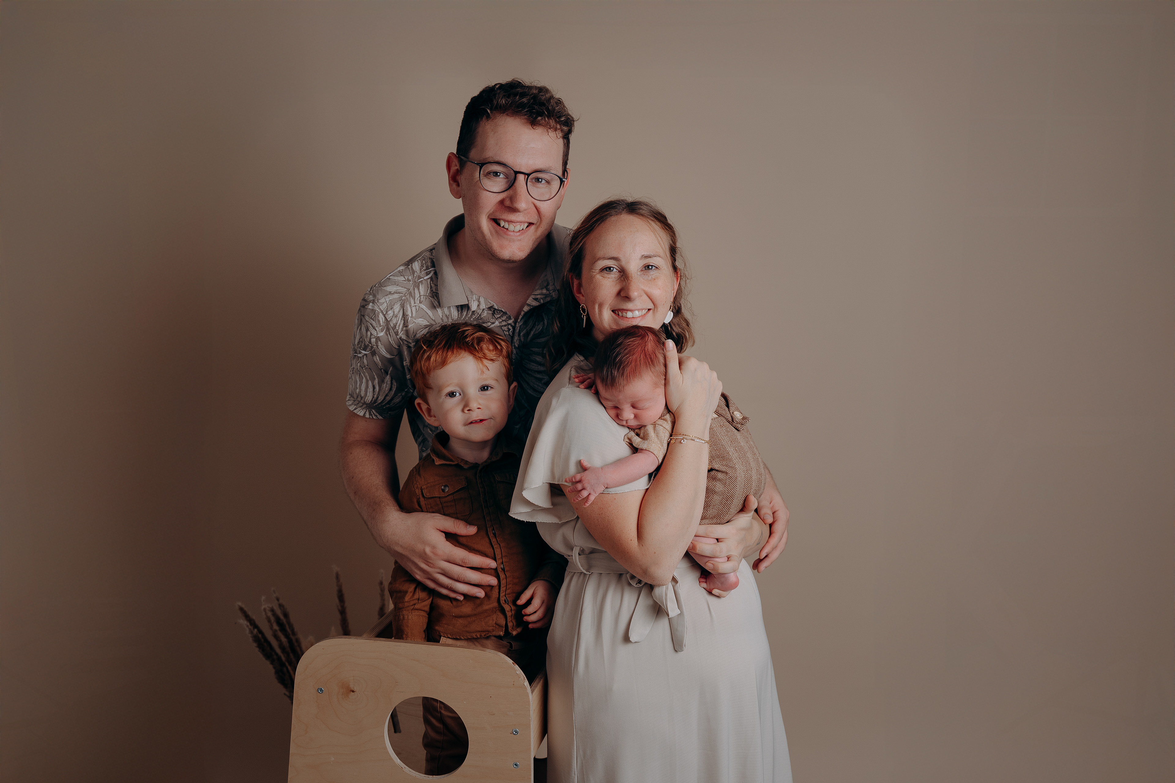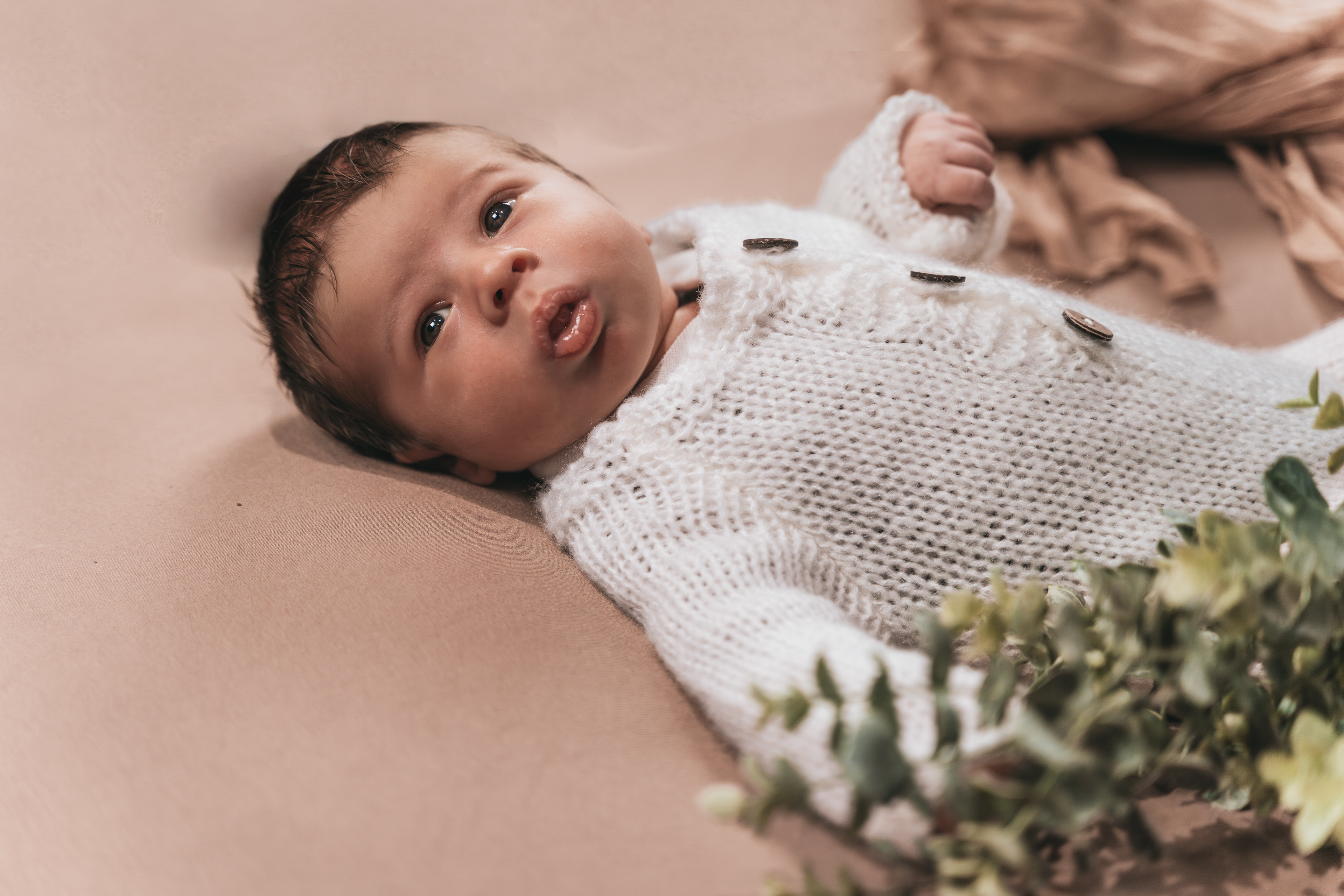 Fond neutre, lumière douce, accessoires minimalistes… tout est pensé pour mettre l’émotion au cœur de l’image, dans une ambiance simple et chaleureuse.
